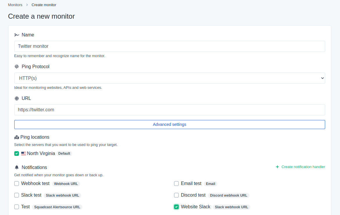 * Add this newly created Notificaion handler to any of the monitors and you will get Up/Down notifications for that monitor in Squadcast.